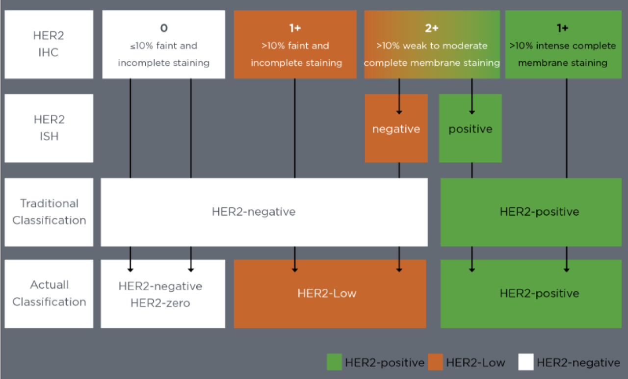 Diese Klassifizierung wurde in den ESMO Expert Consensus Statements (ECS) 2023 um den Status „Her2 low“ erweitert.